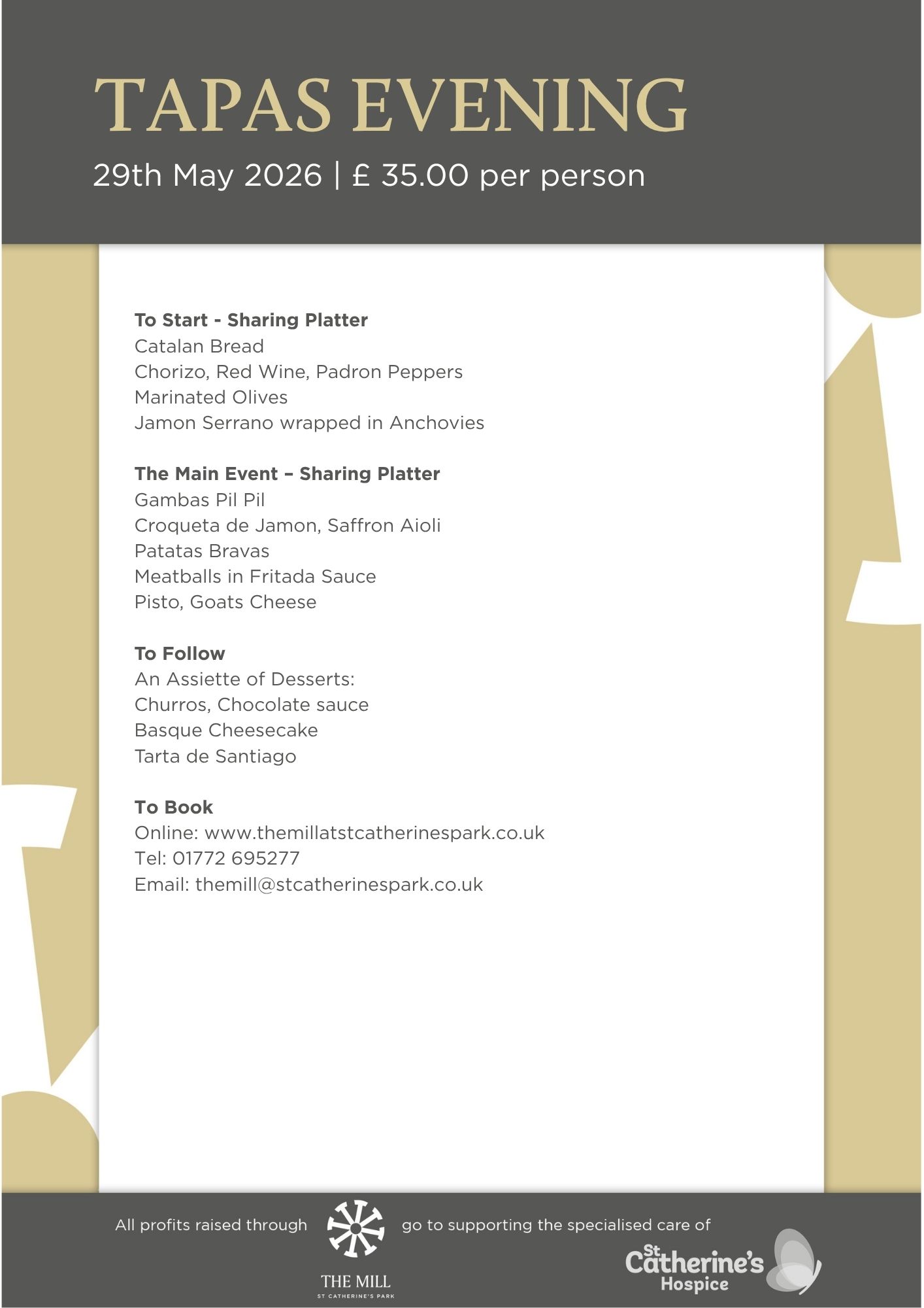 Join us at The Mill for an evening of delicious dishes at our Tapas theme night.