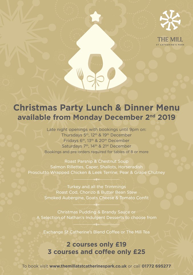 Throughout December The Mill will be serving up a delicious festive menu each lunch time, and will also be open late on Thursdays, Fridays and Saturdays.